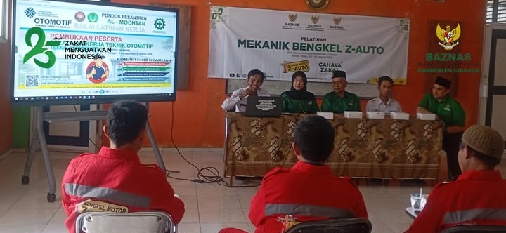 Pelatihan ini dibuka secara resmi oleh Ketua BAZNAS Kabupaten Cianjur, H. Tata, A.Pi., MM. Para peserta mendapatkan materi manajemen keuangan, pengelolaan bengkel, strategi pemasaran, serta penguatan nilai spiritual dalam menjalankan usaha.