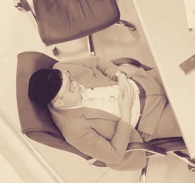 Dengan menggunakan kaca mata bening anggota wakil rakyat itu bersandar di kursi sambil meletakan tangan di atas perut, diduga tertidur.